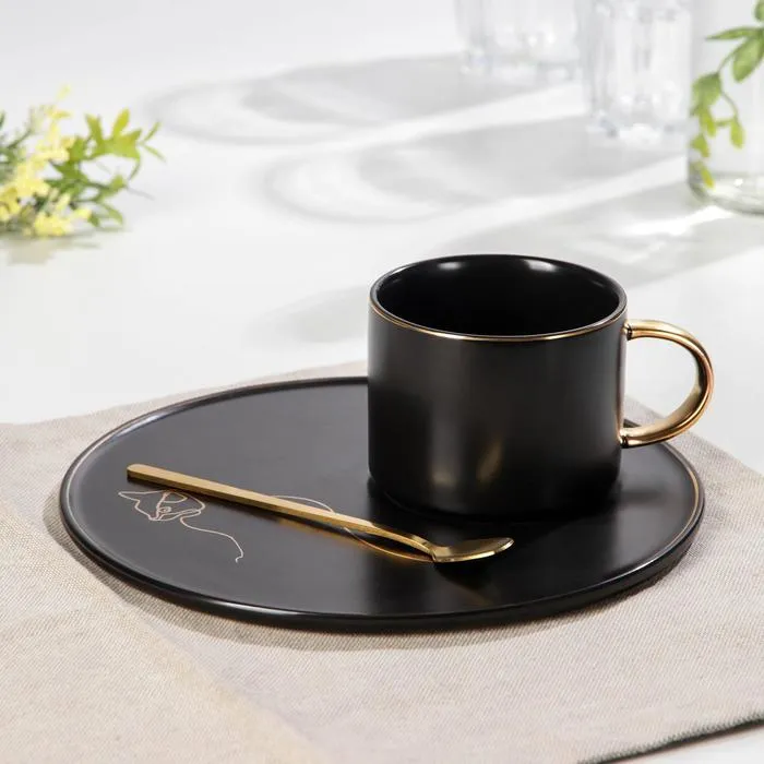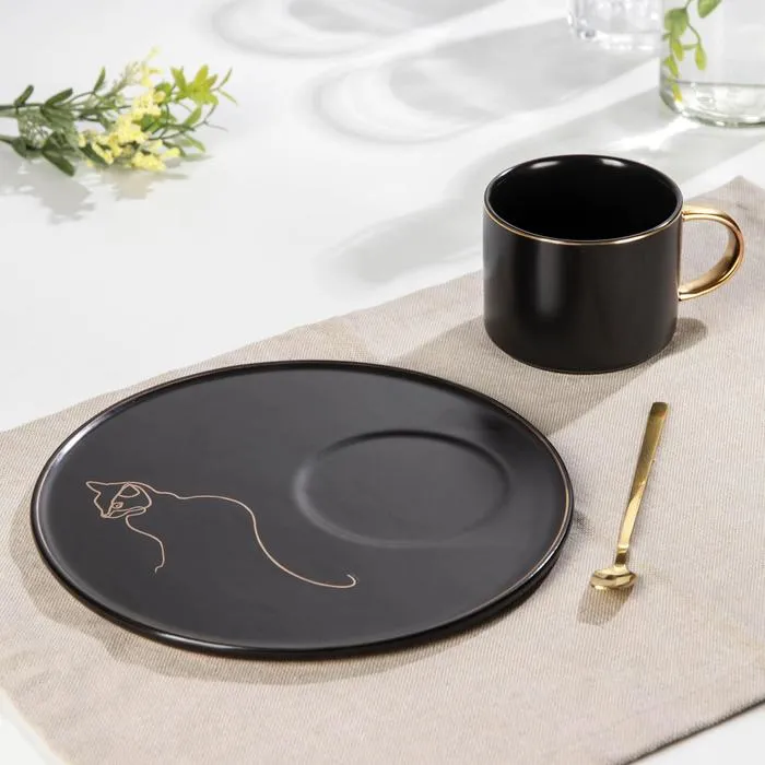 Чайная пара керамическая с ложкой «Силуэт», 2 предмета: кружка 260 мл, тарелка d=19,6 см, рисунок МИКС — Характеристики