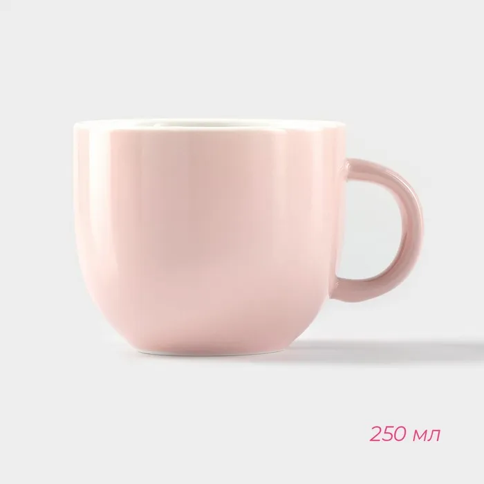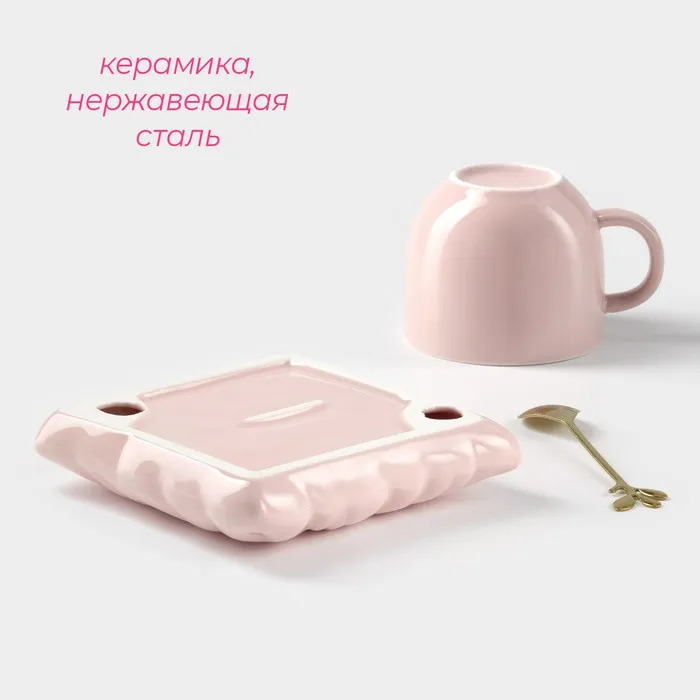 Чайная пара керамическая с ложкой «Зефирка», 2 предмета: чашка 250 мл, блюдце d=13 см, цвет розовый — Характеристики