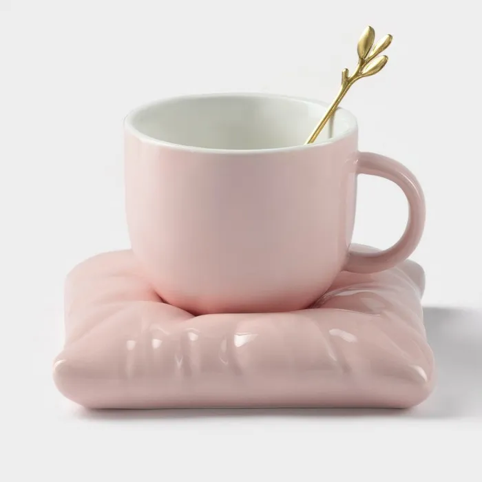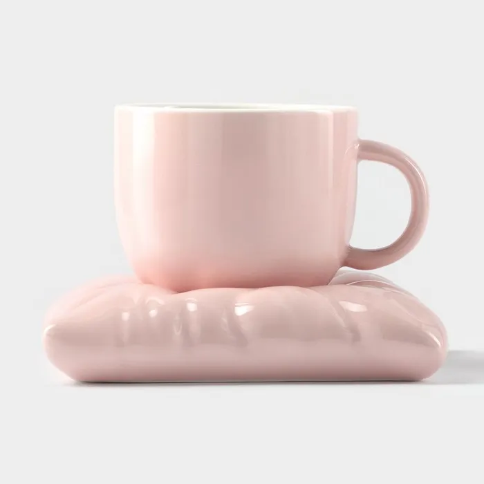Чашка и блюдце в форме подушечки отлично подойдут в качестве подарка по любому поводу.