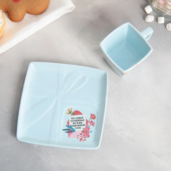 Чайная пара керамическая «Ты самая особенная»: кружка 150 мл, блюдце 15.5×15.5 см — Характеристики