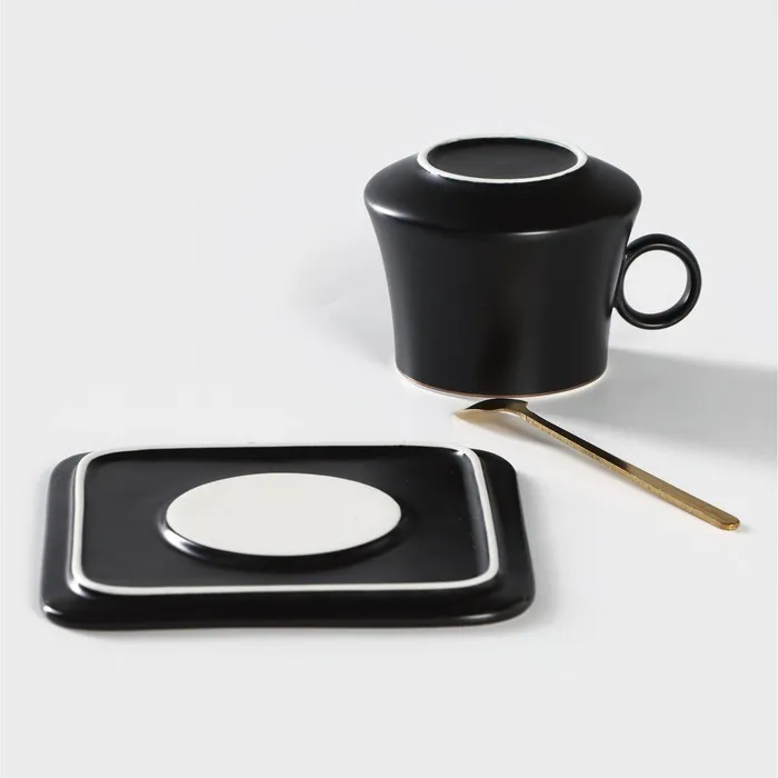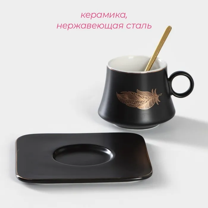Чайная пара «Лист», 2 предмета: кружка с ложкой 180 мл, блюдце d=13.5 см, керамика, чёрная — Характеристики
