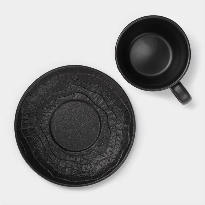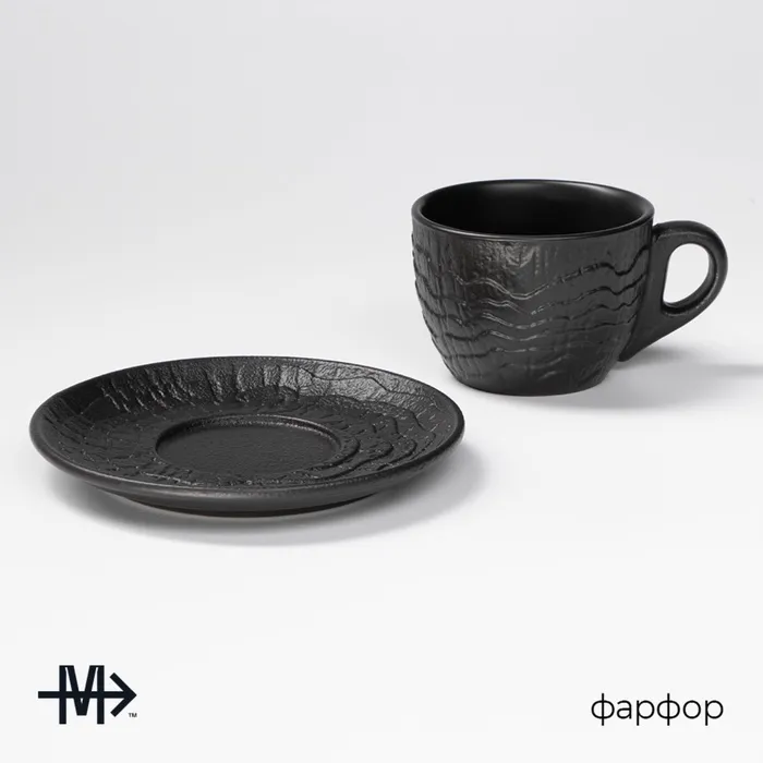 Чайная пара Magistro Black style, 2 предмета: чашка 200 мл, блюдце d=14.5 см, фарфор, чёрная — Характеристики