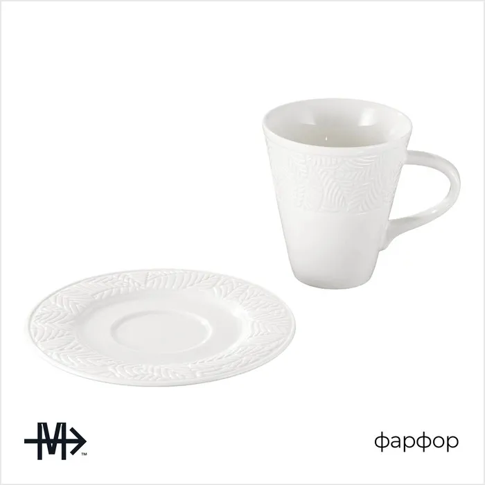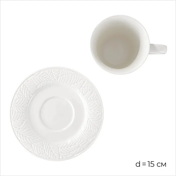 Чайная пара Magistro Crotone, чашка 220 мл, блюдце d=15 см, фарфор, белая — Характеристики