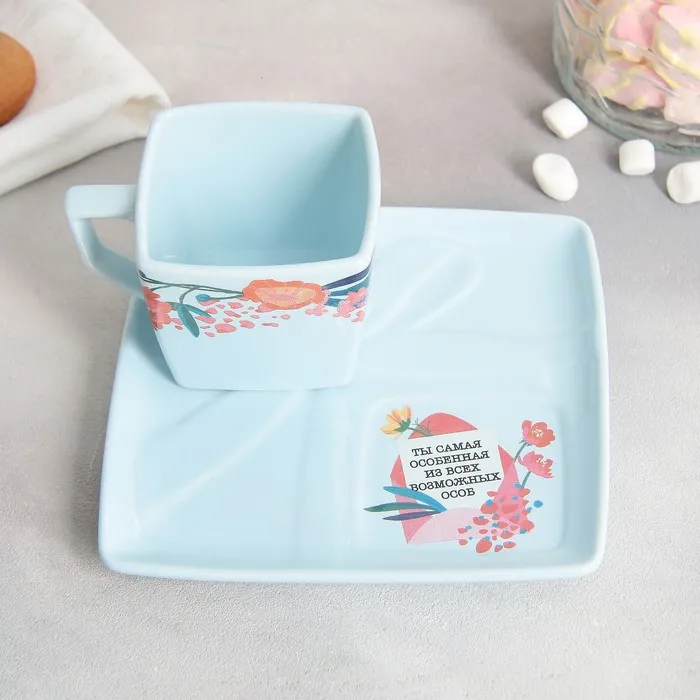 - Сочетаемость кружки и блюдца, создающая гармоничный ансамбль.