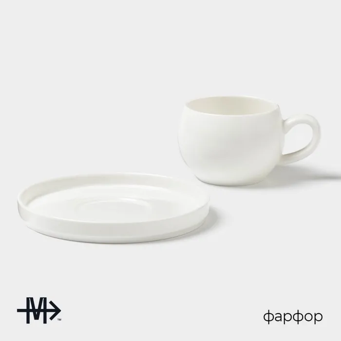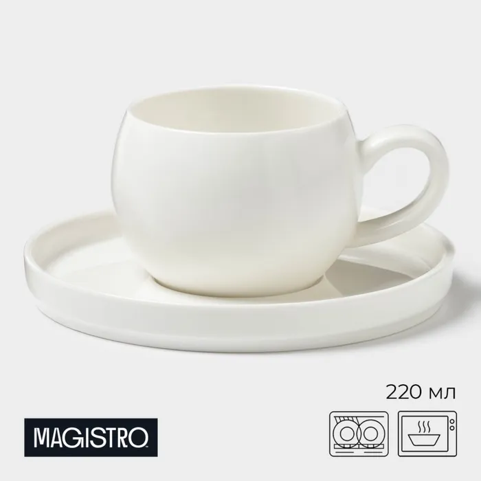 Чайная пара Magistro OliveQueen, 220 мл, 15×15 см, фарфор, белая — Характеристики