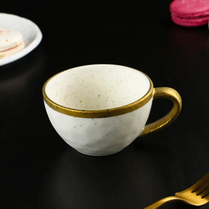 Посуда серии Magistro Poursephona — это современная фарфоровая посуда. В оформлении серии превалируют два цвета – бежевый оттенок фарфора и роскошное золото в виде широкой окантовки предметов. Идеально подходит как для формального обеда, так и для торжеств по особым случаям. Лаконичные формы, золотая окантовка, разноцветные вкрапления придают изделиям из фарфора одновременно необычный и современный вид.