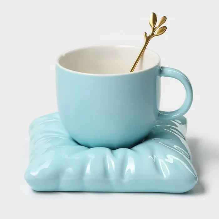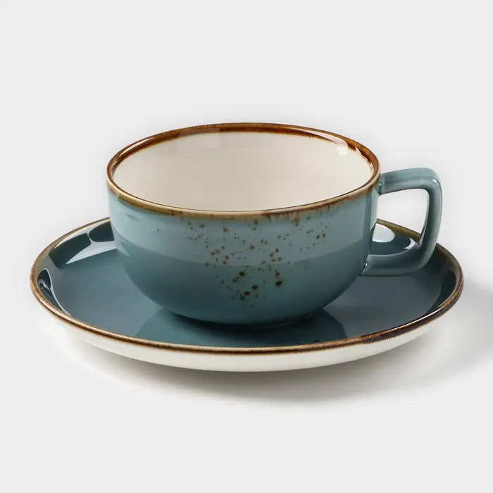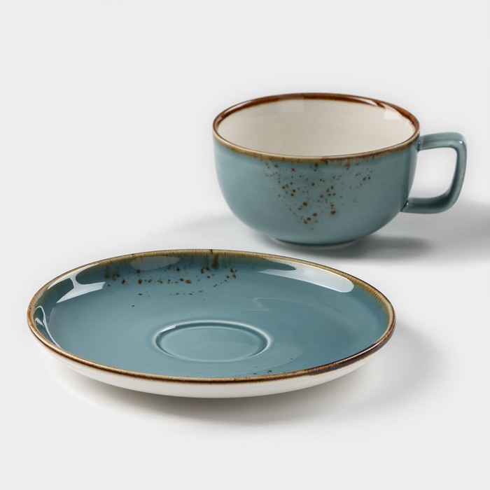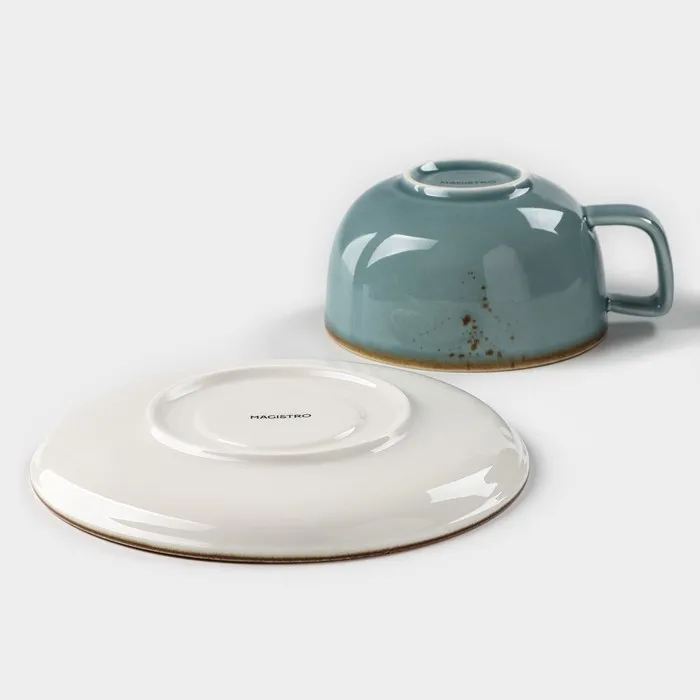 Чайная пара Magistro «Церера», 2 предмета: чашка 250 мл, блюдце d=16,5 см, фарфор, голубая — Характеристики