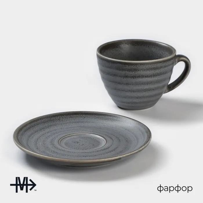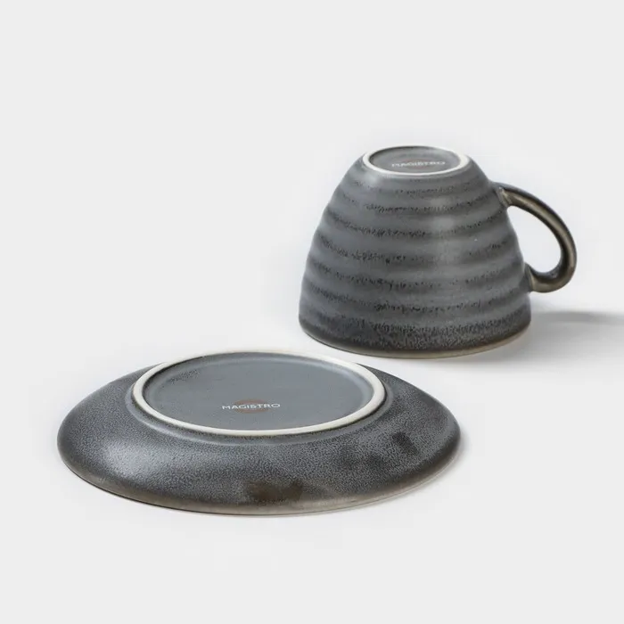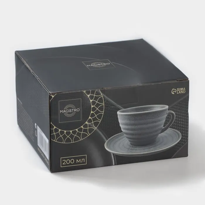 Чайная пара Magistro Urban, чашка 200 мл, блюдце d=14.2 см, фарфор, серая — Характеристики