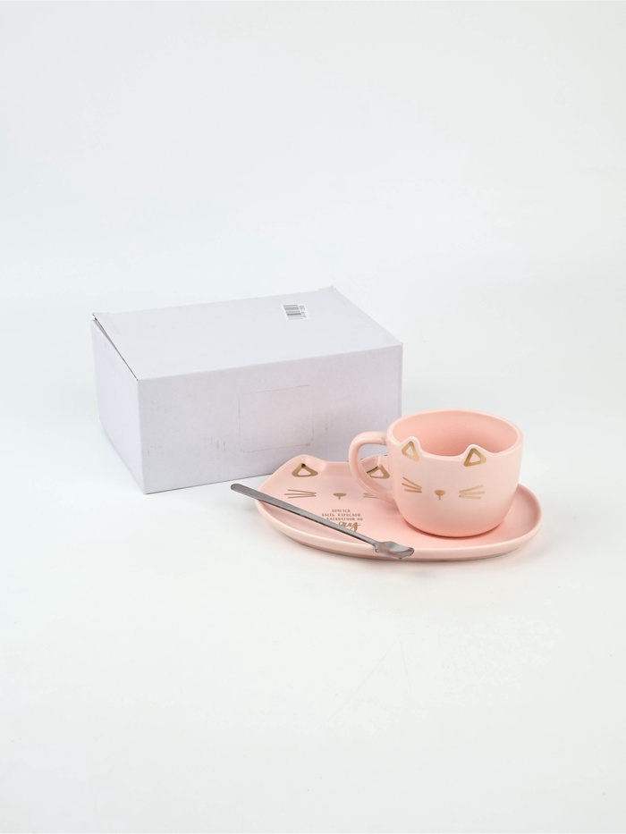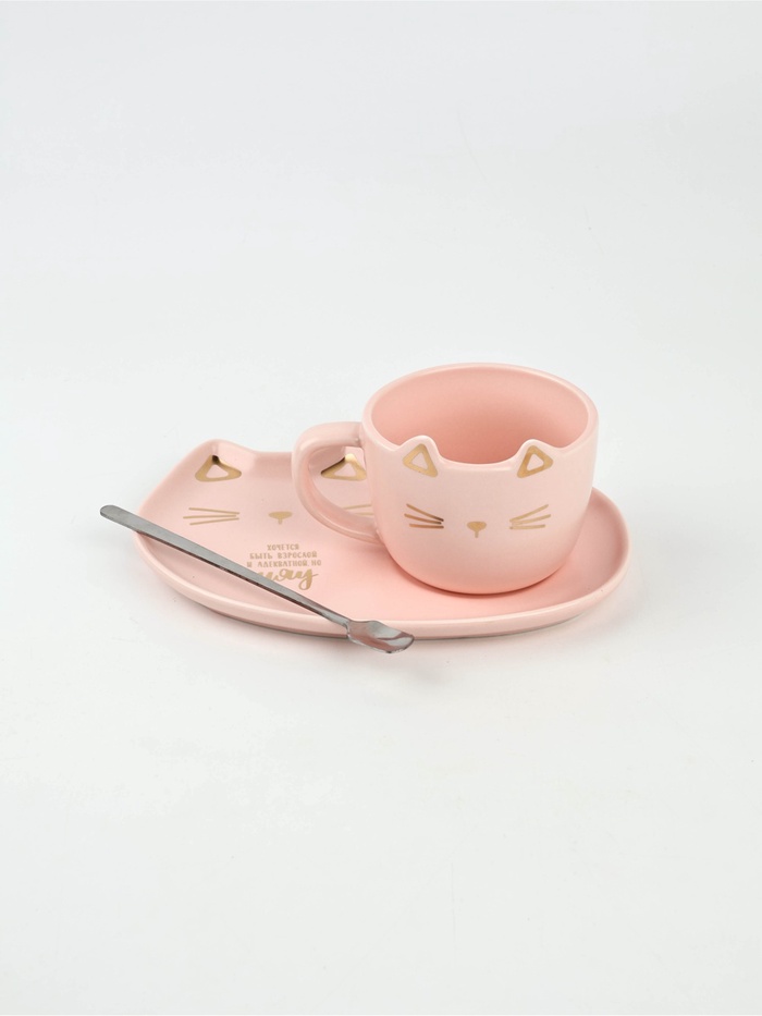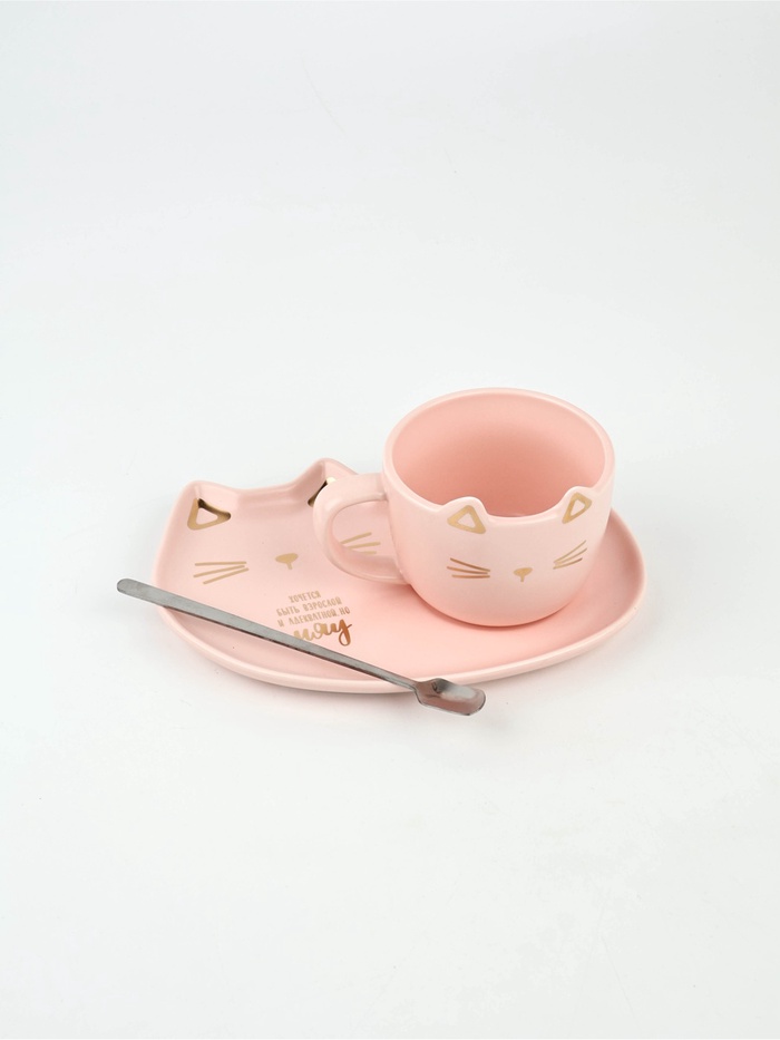 Набор «Мяу» состоит из кружки объёмом 200 мл, блюдца и ложечки.