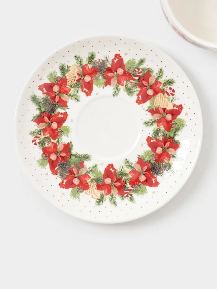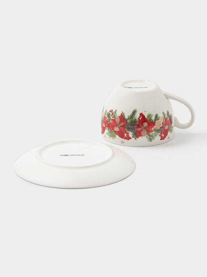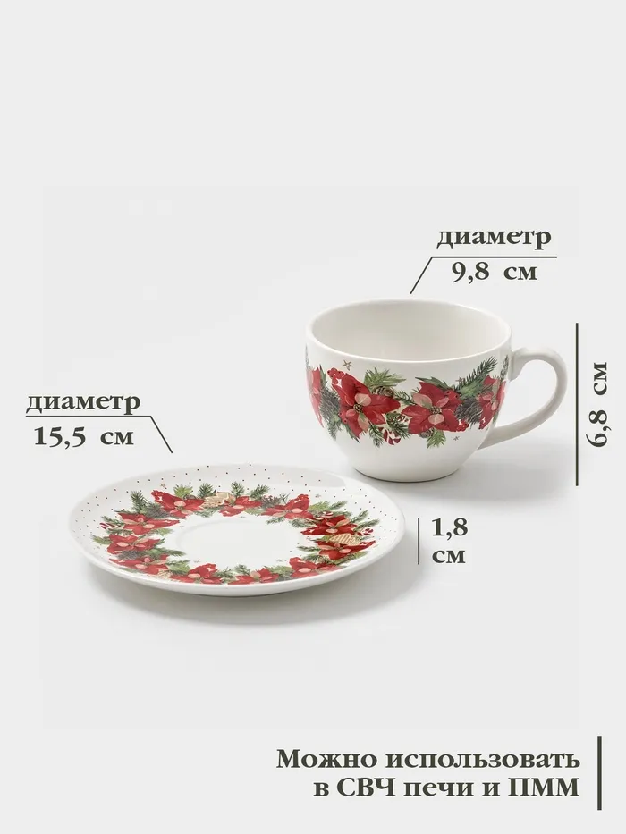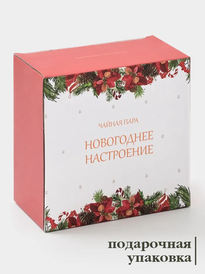 Чайная пара «Новогоднее настроение», 2 предмета: чашка 210 мл, блюдце d=15.5 см, фарфор, белая — Характеристики