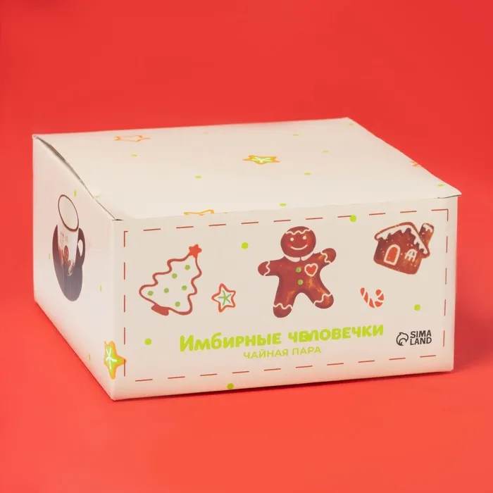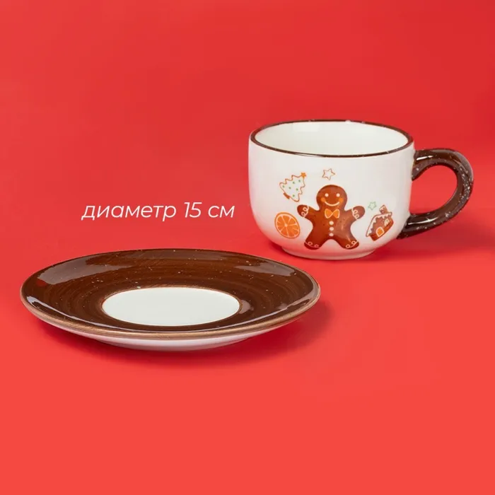 Чайная пара новогодняя Доляна «Имбирные человечки», кружка 12.5×9.3×6.5 см, блюдце d=15 см — Характеристики