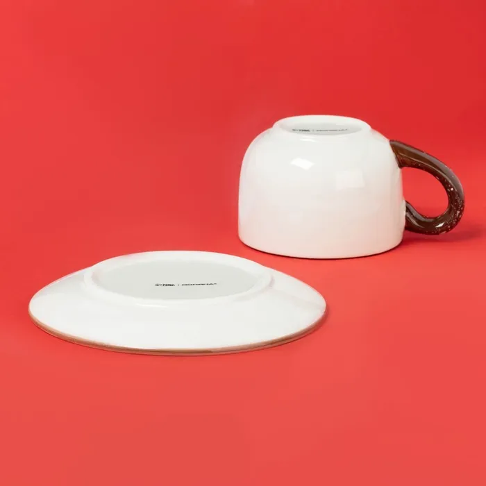 - Кружка и блюдце повторяют тематический стиль, создавая целостный образ сервировки.