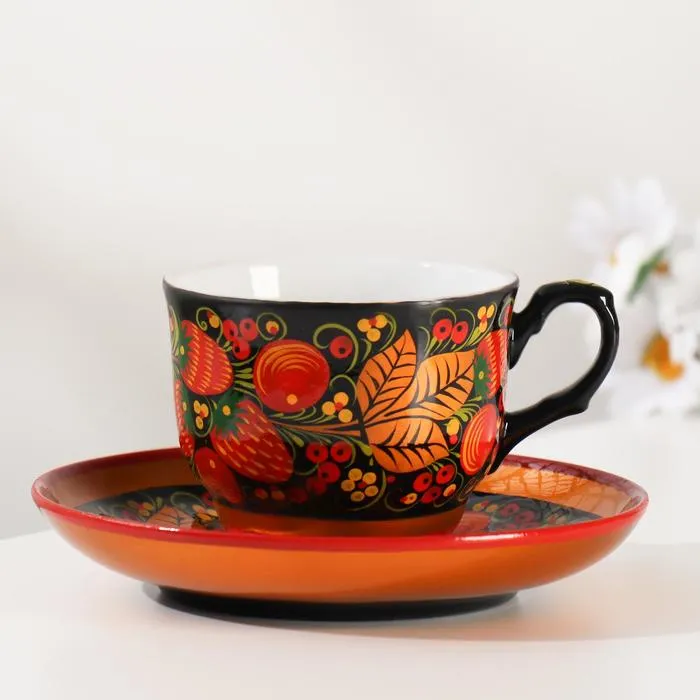 - Практичность: кружка и блюдце изготовлены из качественных материалов, безопасных для здоровья. Они прочные и долговечные, поэтому прослужат вам долгое время.