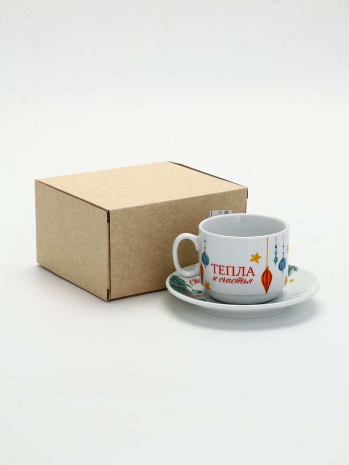 Чайная пара новогодняя «С Новым годом! Новогодние игрушки», 220 мл, кружка, блюдце — Характеристики