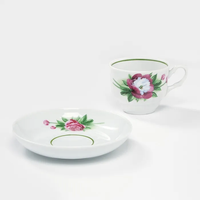 Чайная пара «Пион», 250 мл, блюдце d=15 см, фарфор — Характеристики