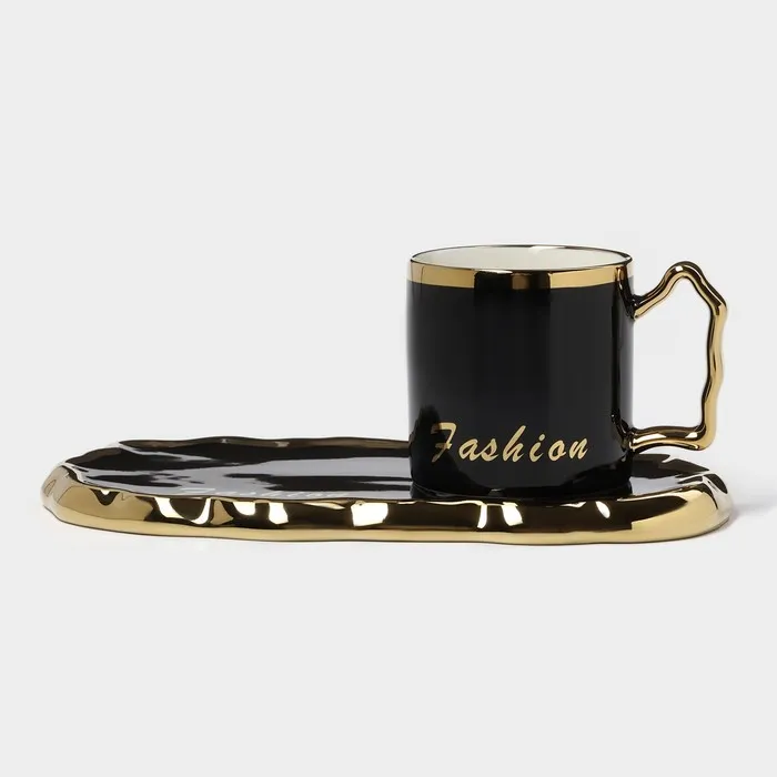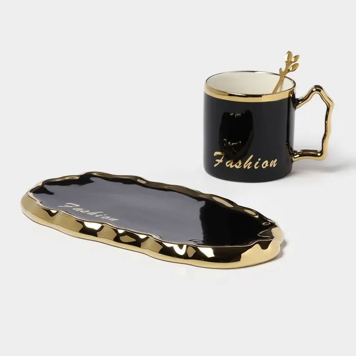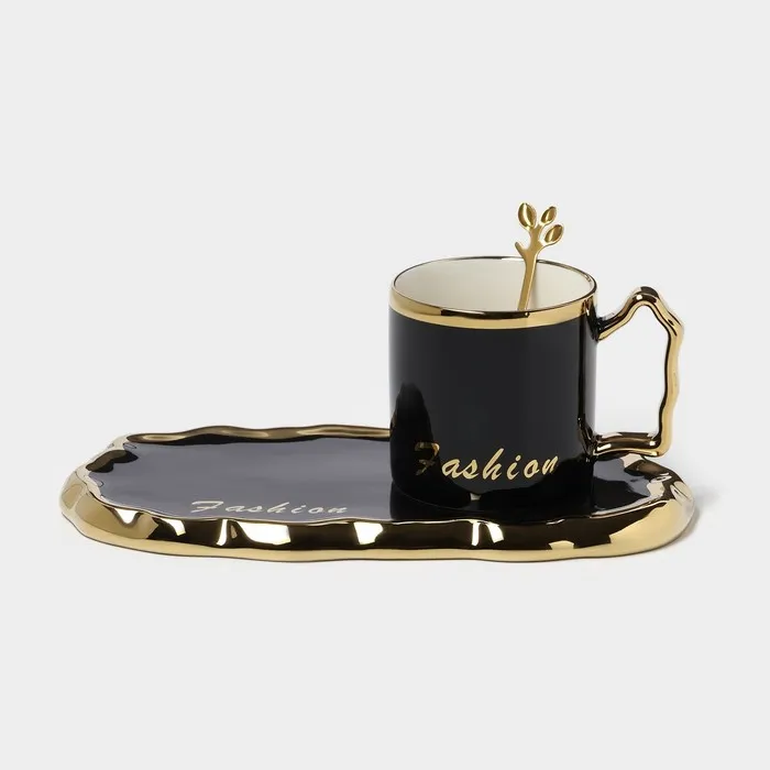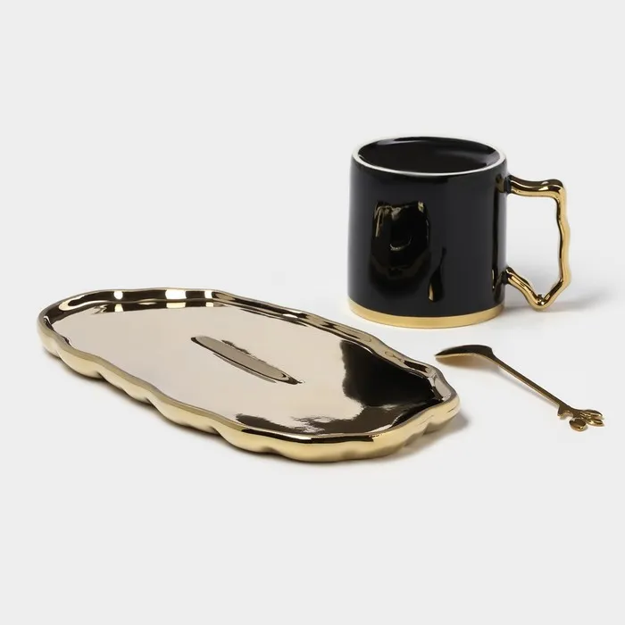 Чайная пара «Роскошь», 3 предмета: кружка 250 мл, блюдце 23.5×13 см, ложка, керамика, чёрная — Характеристики