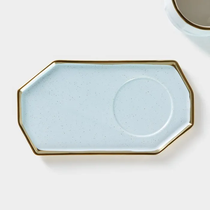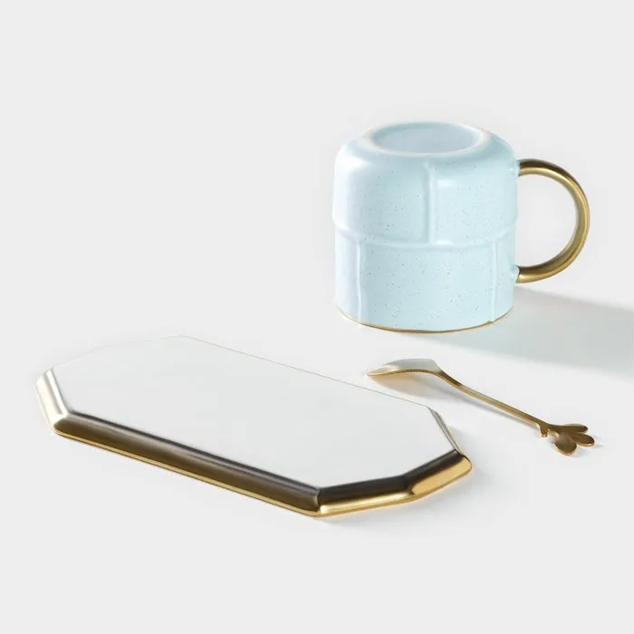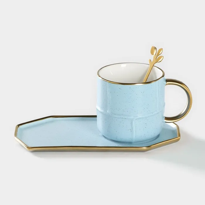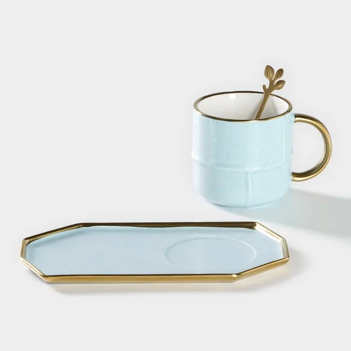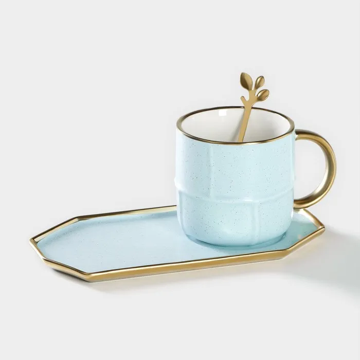 Чайная пара с ложкой «Весна», кружка 300 мл, 11.5×8×8 см, блюдце 19.5×10.5 см, керамика, голубая — Характеристики