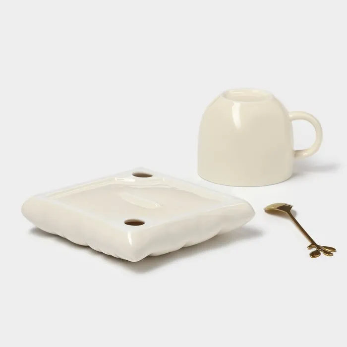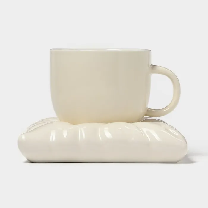 Чашка и блюдце в форме подушечки отлично подойдут в качестве подарка по любому поводу.