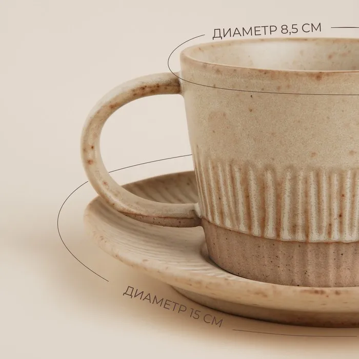 Чайная пара SL Home «Виенто», чашка 250 мл, блюдце d=15 см, керамика, бежевая — Характеристики
