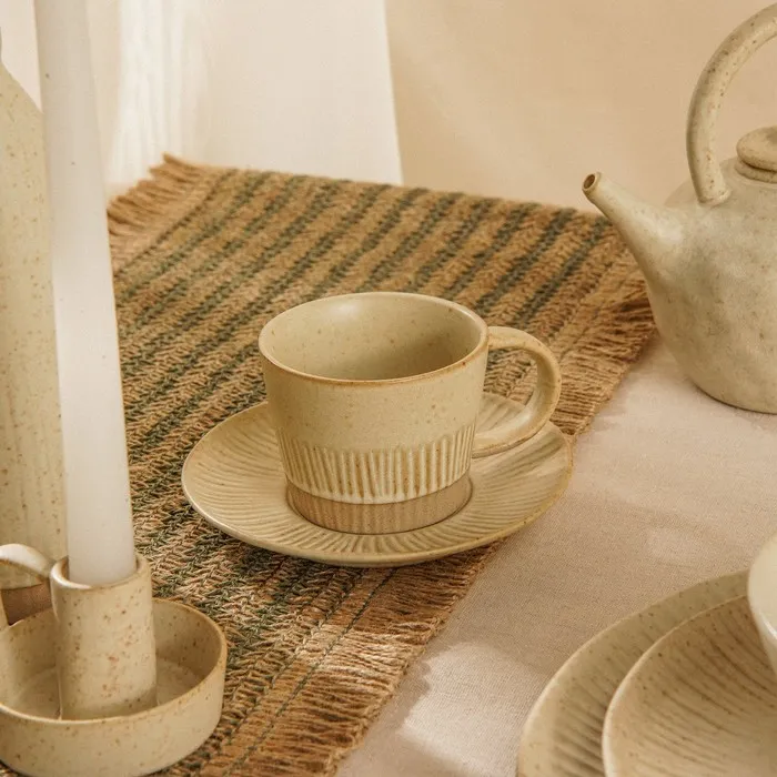 Изготовленные из высококачественной керамики, чашка и блюдце в бежевом цвете создают атмосферу уюта и спокойствия, превращая каждое чаепитие в маленький ритуал.