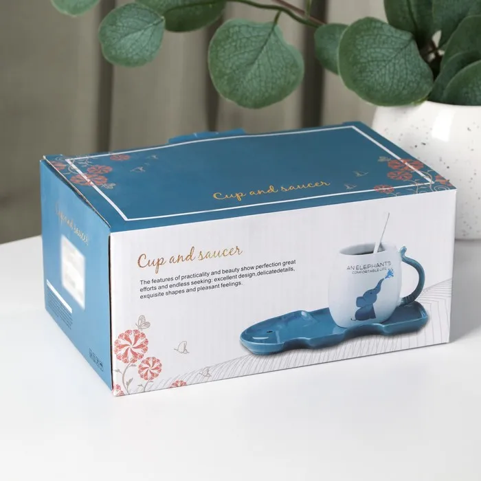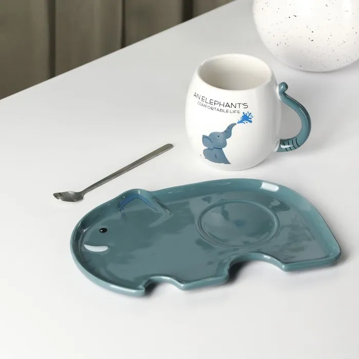 Чайная пара «Слоник», 2 предмета: кружка с ложкой 220 мл, блюдце 19×12.5 см, керамика — Характеристики