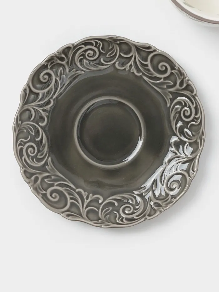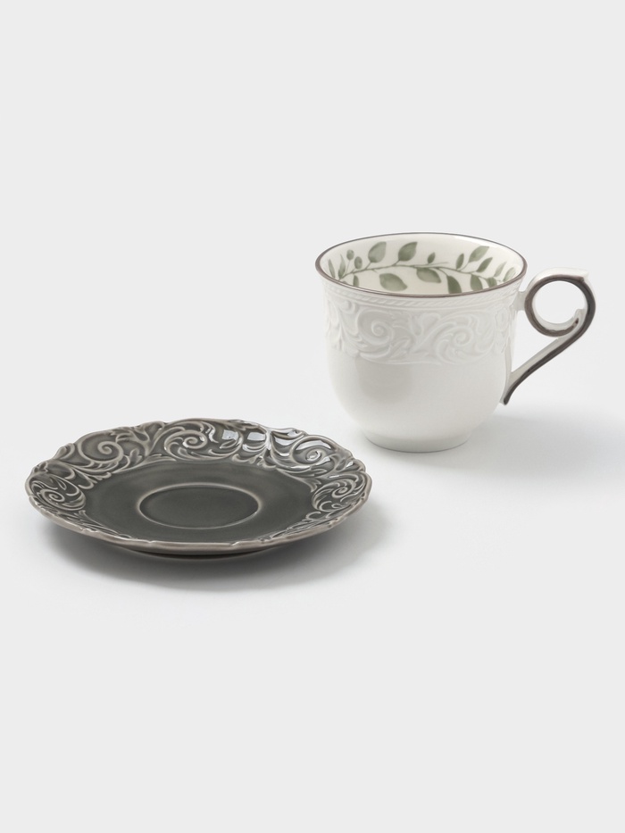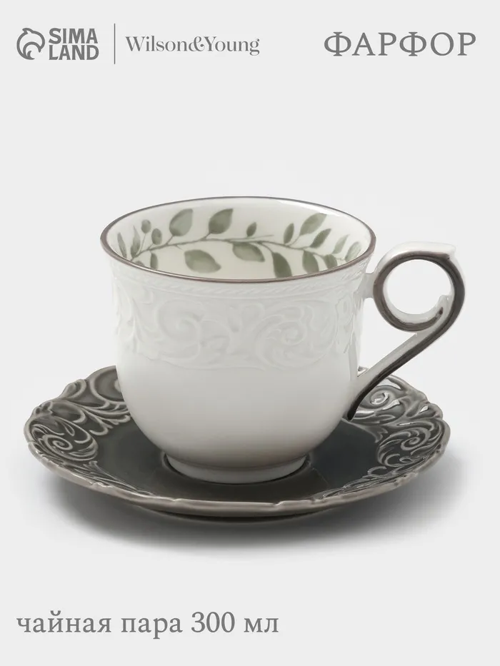 Этот фарфоровый набор для чая включает одну фигурную чашку объемом 300 мл и блюдце диаметром 15 см. Бело-серая гамма и рельефный цветочный рисунок создают гармоничный образ, подходящий для уютных домашних чаепитий и деловых встреч.