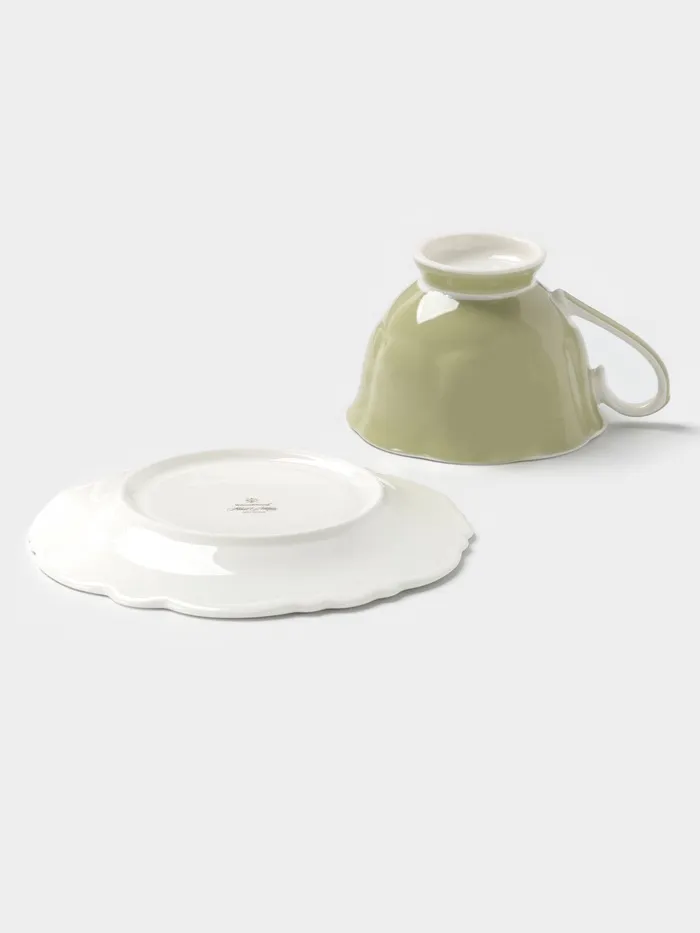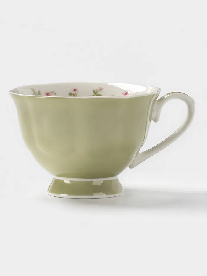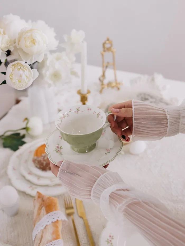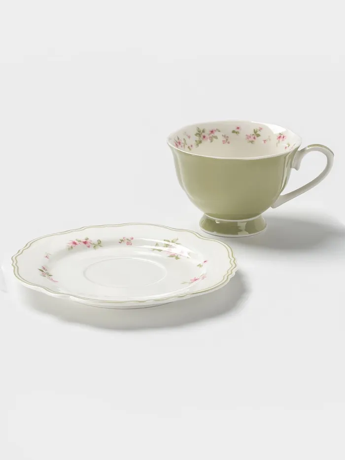 Зелёная Чайная Пара "Spring Flowers": Дыхание Весны в Ваших РукахПочувствуйте свежесть весеннего утра с этой очаровательной зелёной чайной парой из тонкого фарфора, украшенной нежными цветочными мотивами.