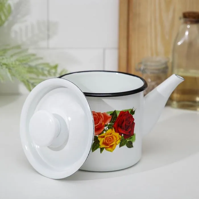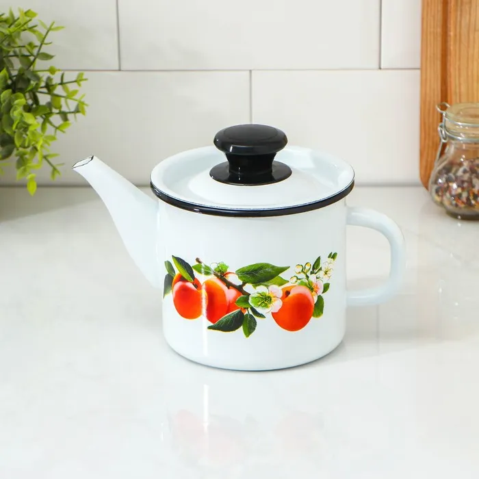 Чайник, 1 л, эмалированная сталь, деколь МИКС, белый