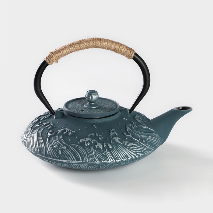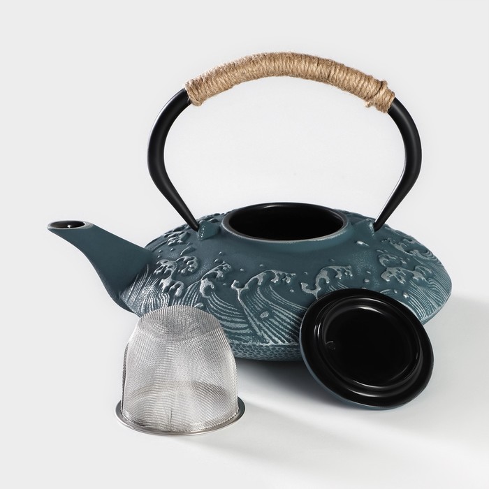Чайник чугунный Доляна «Ялонг», 800 мл, с ситом, цвет голубой — Характеристики
