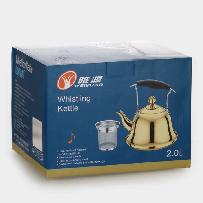 Чайник для плиты «Голд», 2 л, 23×19×20 см, нержавеющая сталь, золотистый — Характеристики