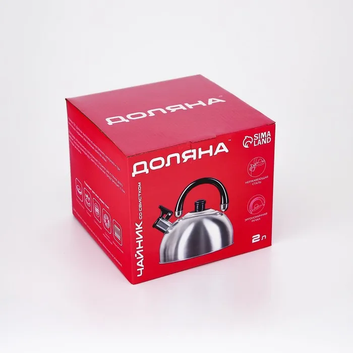 Чайник Доляна «Чёрная ночь», 2 л, со свистком, индукция, нержавеющая сталь, хромированный — Характеристики