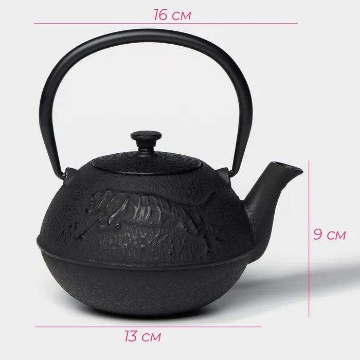 Чайник Доляна «Чёрный тигр», 700 мл, с ситом, эмалированное покрытие внутри, индукция, чугун, чёрный — Характеристики