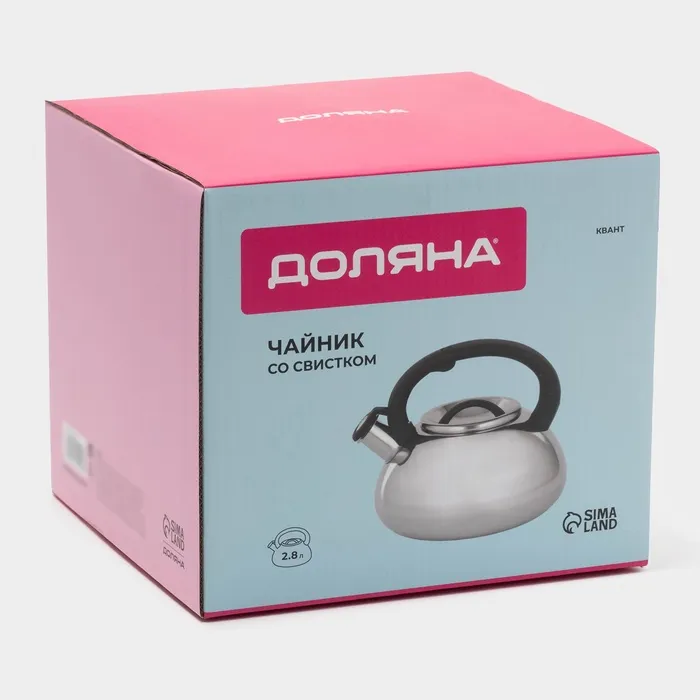 Чайник Доляна «Квант», 2.8 л, со свистком, фиксированная ручка, нержавеющая сталь, хромированный — Характеристики