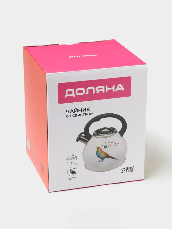 Чайник Доляна Magic birds, 3 л, со свистком, с индикатором нагрева, индукция, нержавеющая сталь, белый — Характеристики