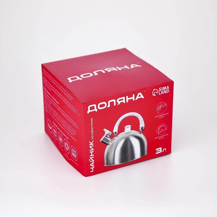 Чайник Доляна «Мрамор», 3 л, со свистком, нержавеющая сталь, хромированный — Характеристики