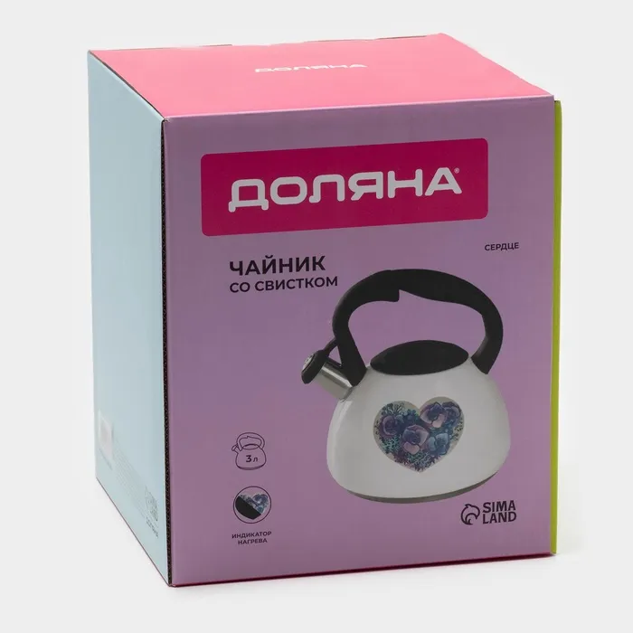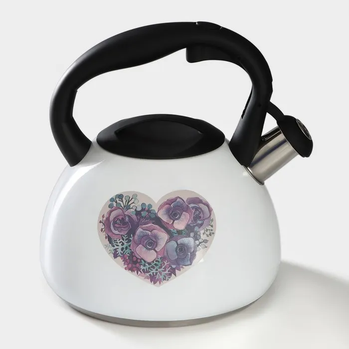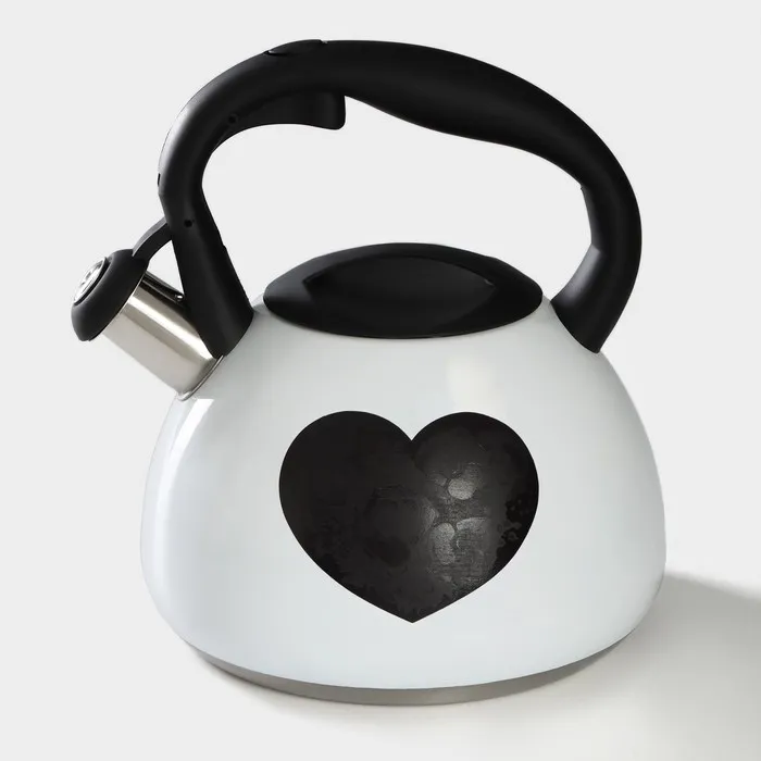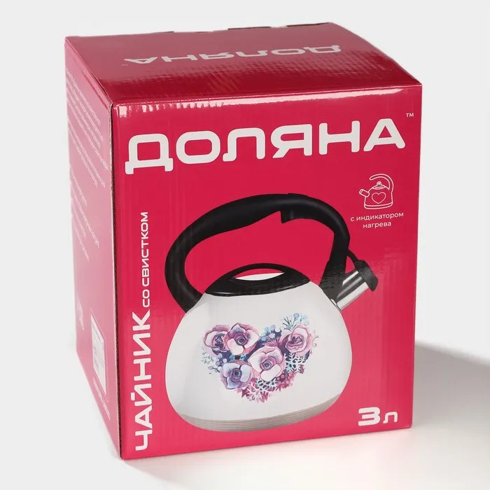 Чайник Доляна «Сердце», 3 л, со свистком, с индикатором нагрева, нержавеющая сталь, белый — Характеристики