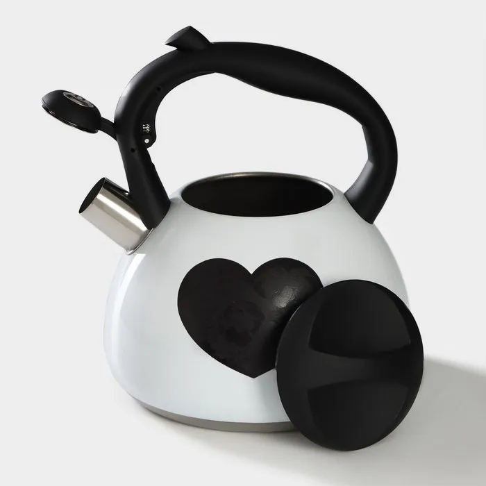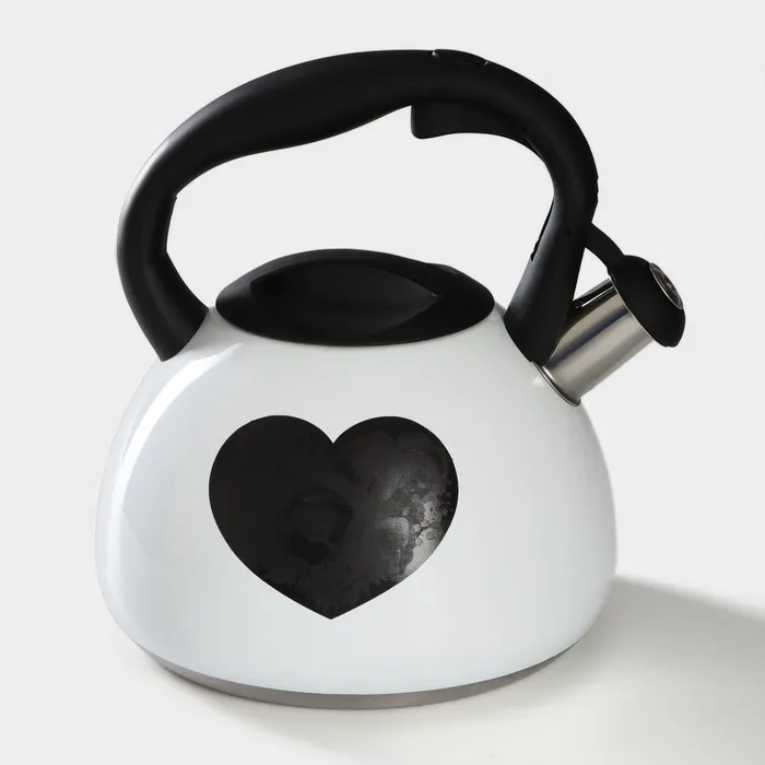 Чайник со свистком «Сердце» изготовлен из нержавеющей стали. Современная форма обеспечивает быстрый нагрев воды и долгое сохранение её высокой температуры. Благодаря элегантному дизайну предмет станет украшением интерьера.