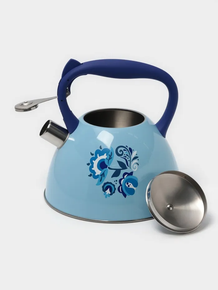 Чайник Доляна «Свиристель», 3 л, со свистком, нержавеющая сталь, голубой — Характеристики