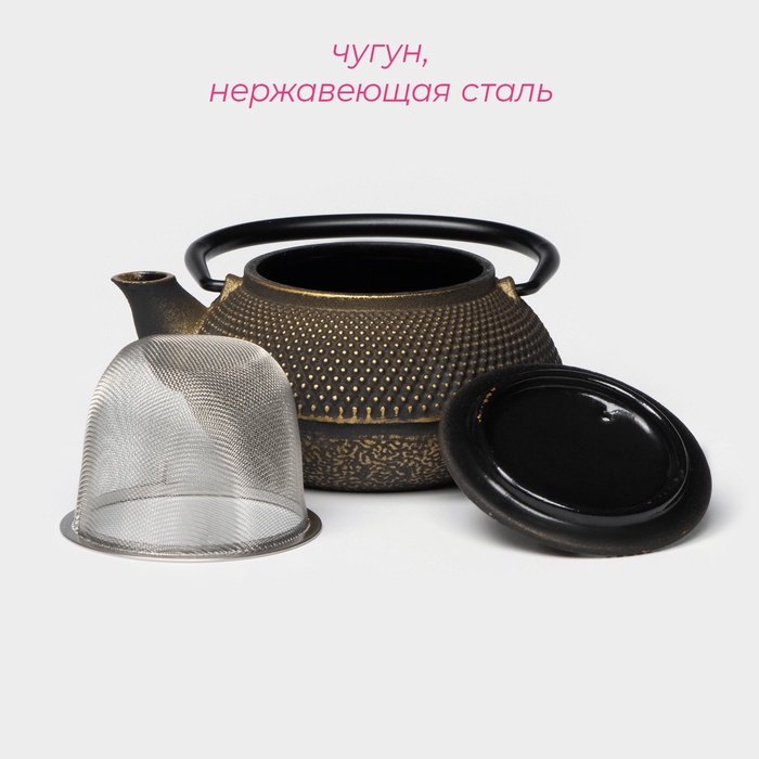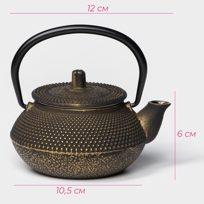 Чайник Доляна «Восточная ночь. Золото», 300 мл, с ситом, чугун, индукция, золотистый — Характеристики