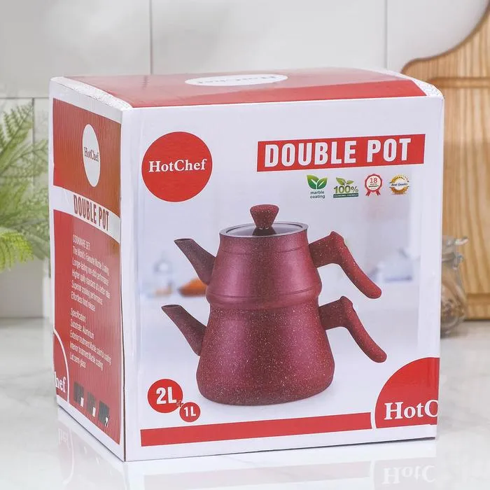 Двойной чайник «Турецкий» — идеальное решение для вашей кухни! Объёмы 1 и 2 литра позволят выбрать подходящий размер для любых нужд. Антипригарное покрытие обеспечивает лёгкость ухода и долговечность изделия. А благодаря широкой цветовой палитре вы точно найдёте идеальный вариант для вашего интерьера. Не упустите возможность сделать вашу кухню ещё уютнее с этим замечательным чайником!
