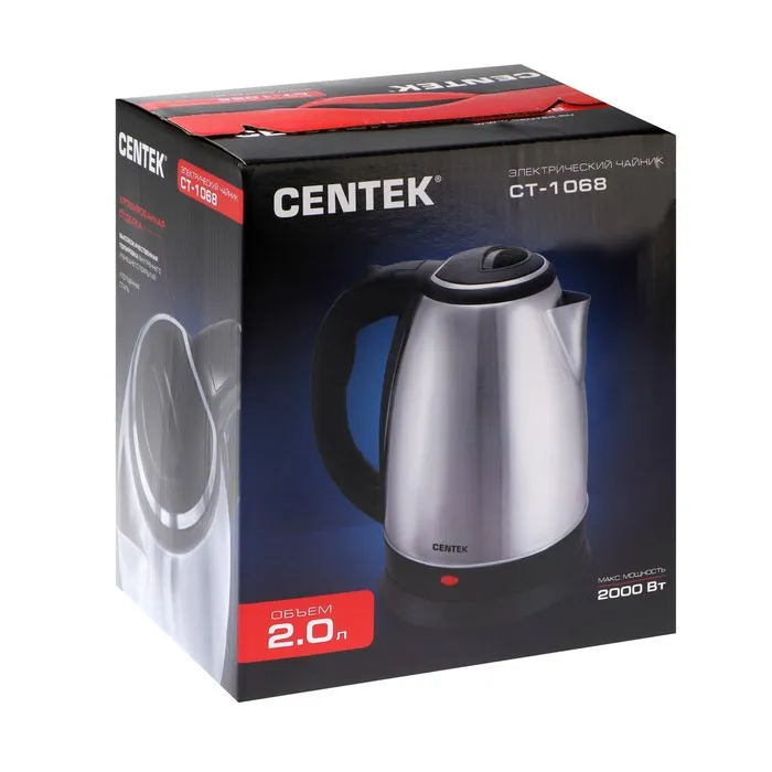 Чайник электрический Centek CT-1068, металл, 2 л, 2000 Вт, серебристый — Характеристики