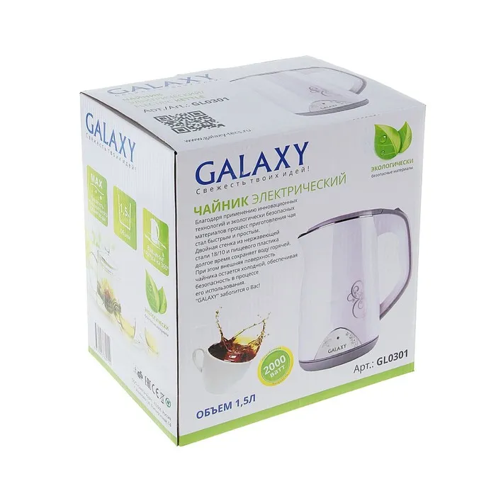 Электрический чайник Galaxy GL 0301 имеет отличный внешний вид и превосходные технические характеристики. Благодаря двойной стенке вода в чайнике надолго остаётся горячей.
