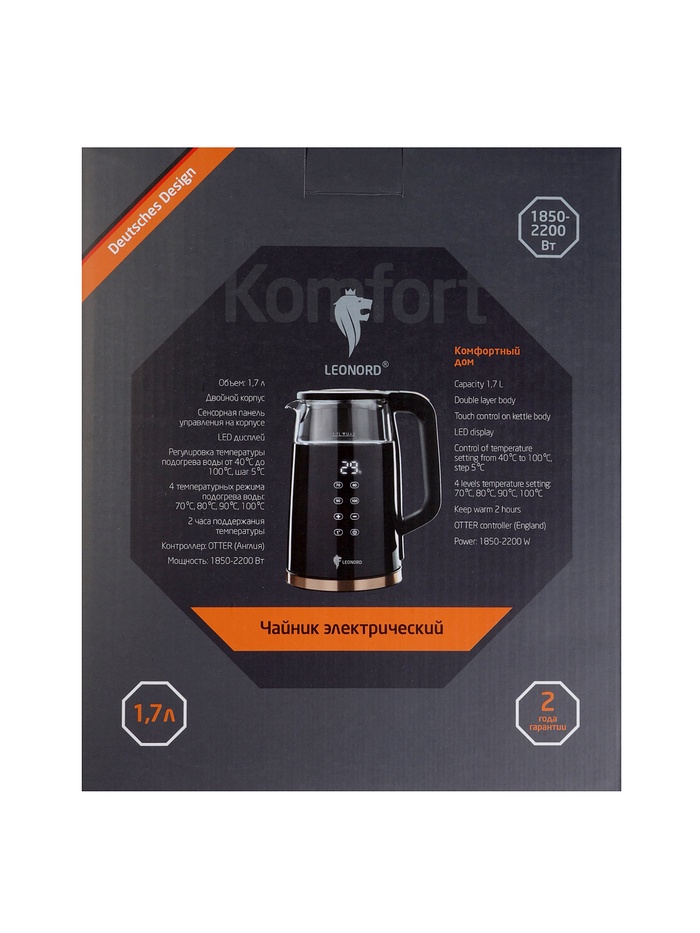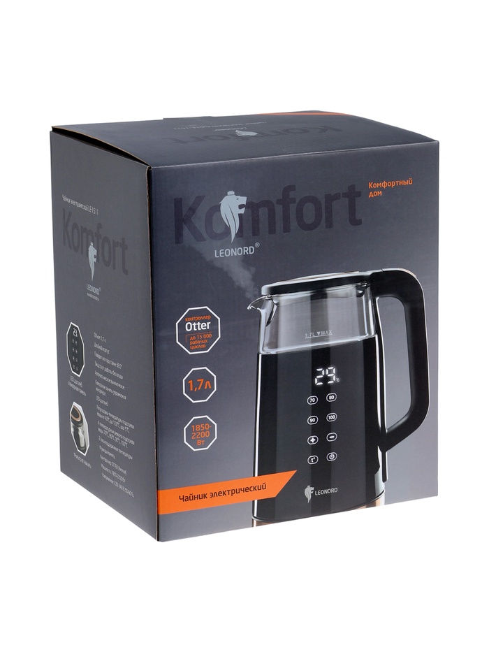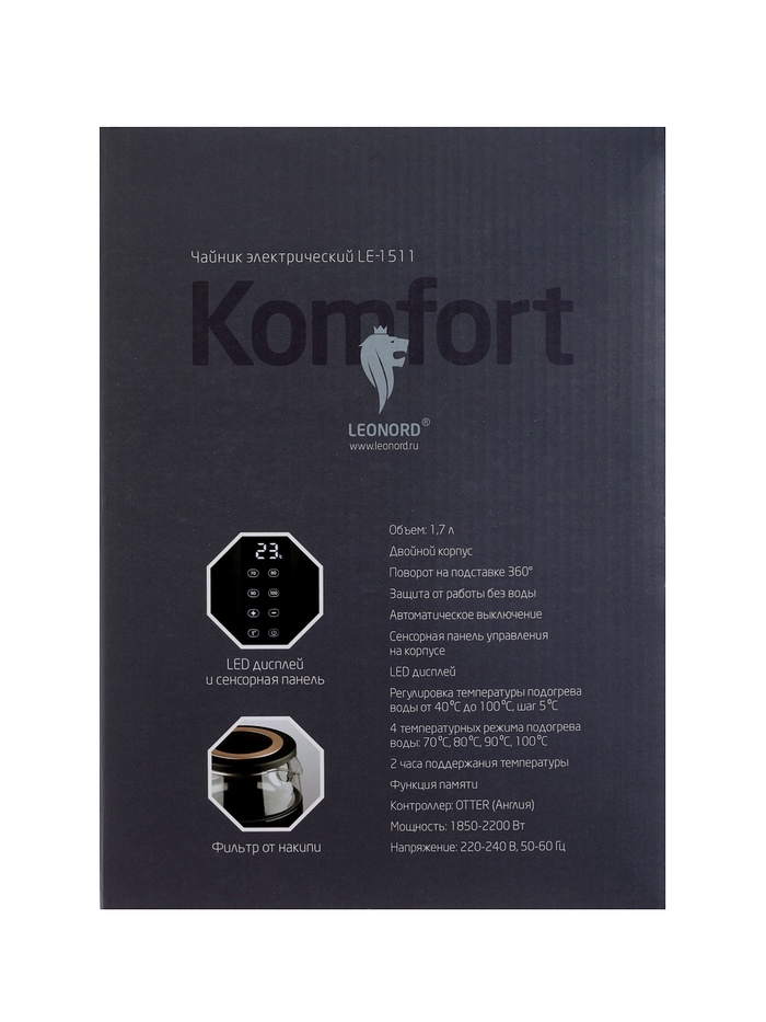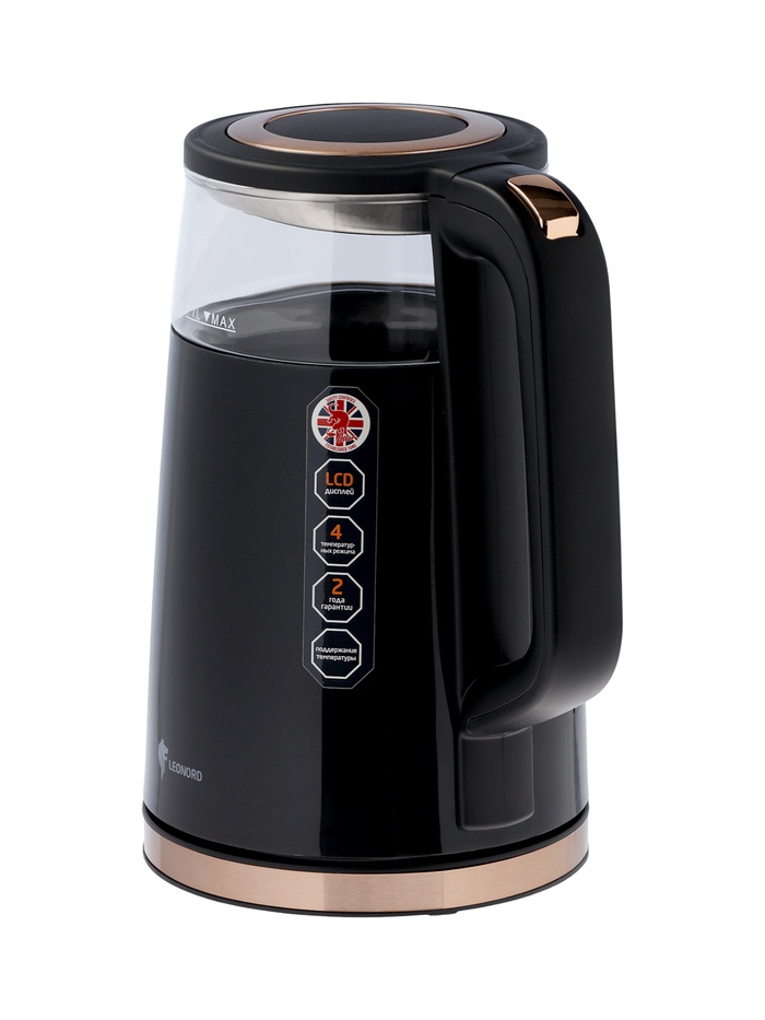 Чайник электрический Leonord LE-1511, 1.7 л, дисплей, поддержание температуры 40-100℃, чёрный — Характеристики