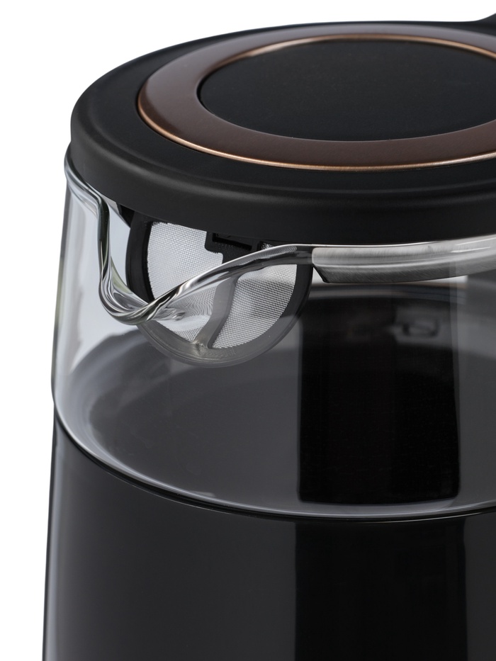 Электрический чайник объёмом 1,7 л и мощностью 2 200 Вт станет ключевым элементом вашей кухни: сенсорное управление, LED-дисплей и функция подогрева сохраняют воду горячей на нужной температуре — от 40 °C до 100 °C. Стильный чёрный корпус с элементами из нержавеющей стали смотрится современно и вписывается в любой интерьер.