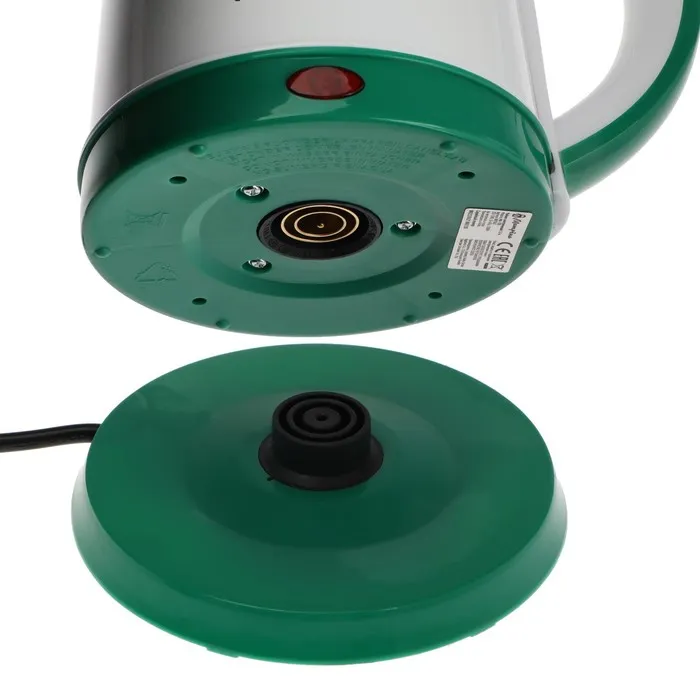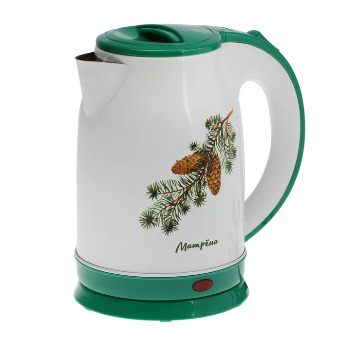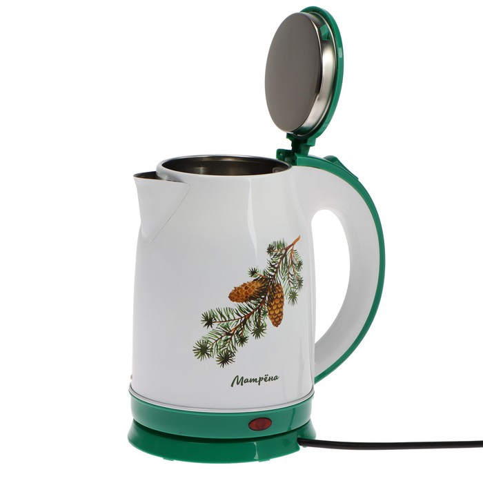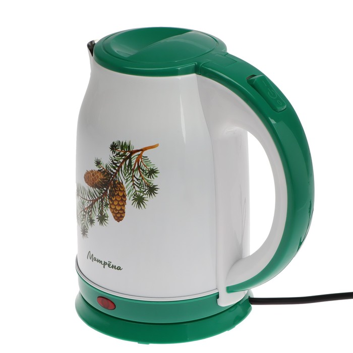 Чайник электрический МАТРЁНА MA-120, металл, 1.8 л, 1500 Вт, бело-зелёный с рисунком "Шишки" — Характеристики