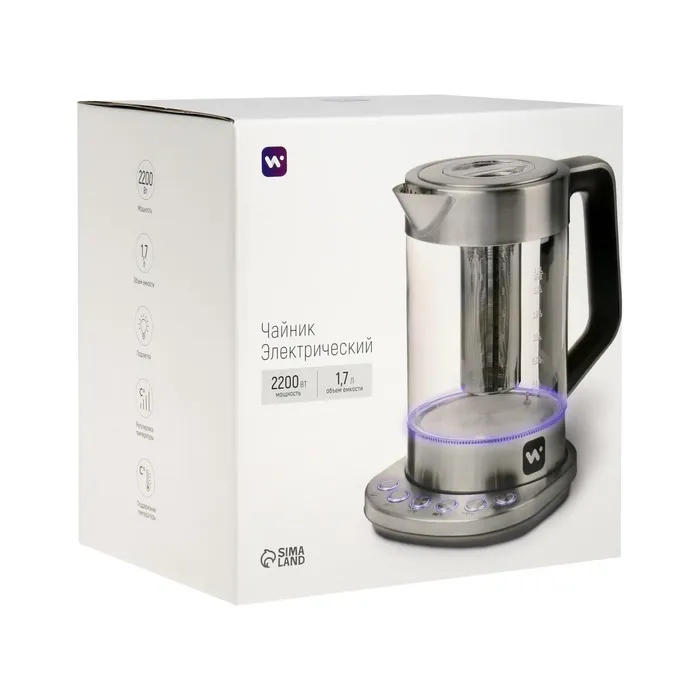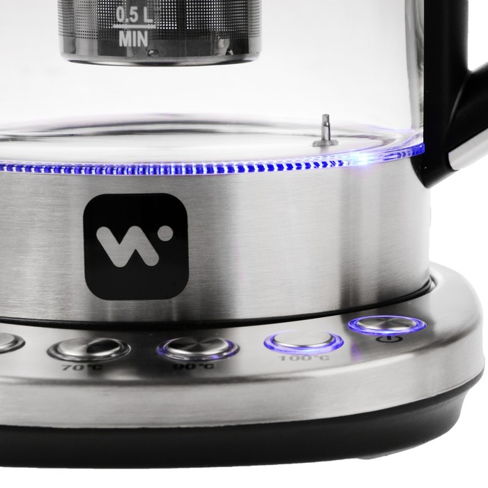 Чайник от Windigo прекрасно подойдет для дома, для офиса или дачи. Надёжный переключатель, удобная кнопка открывания крышки, большая ручка, стильная подсветка сделают обращение с бытовым прибором комфортным и долговечным!