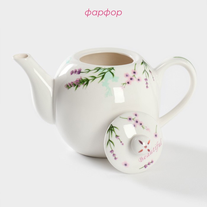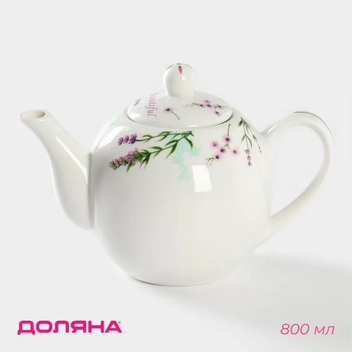 Чайник фарфоровый заварочный Доляна «Лаванда», 800 мл, цвет белый — Характеристики