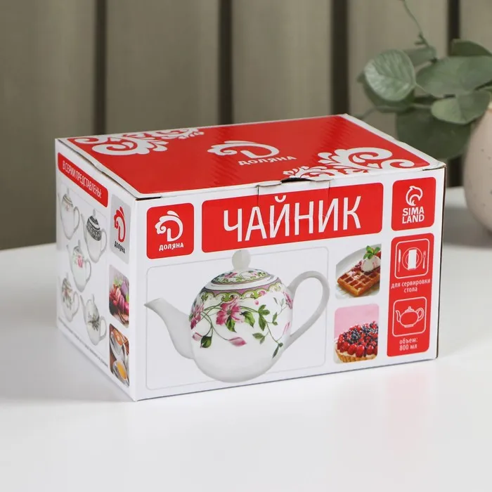 Чайник фарфоровый заварочный Доляна «Розали», 800 мл, цвет белый — Характеристики