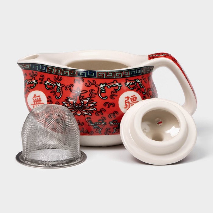 Предлагаемый чайник керамический заварочный с металлическим ситом «Лотос», 200 мл, цвет красный выполнен из керамики высокого качества. Деколь с нежными природными мотивами будет радовать всех участников чаепития. Хрупкая на вид модель обладает высокой износостойкостью и при должном уходе прослужит своему владельцу в течение долгого времени.