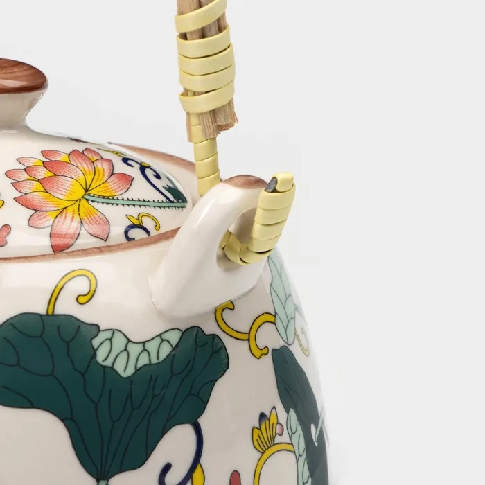 Чайник заварочный выполнен из керамики высокого качества. Деколь с нежными природными мотивами будет радовать всех участников чаепития. Хрупкая на вид модель обладает высокой износостойкостью и при должном уходе прослужит своему владельцу в течение долгого времени.
